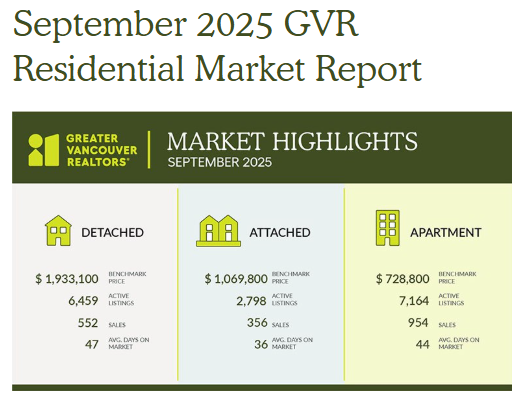 The Greater Vancouver REALTORS® (GVR) reports that residential sales in the region totalled 1,875 in September 2025, a 1.2 per cent increase from the 1,852 sales recorded in September 2024. This was 20.1 per cent below the 10-year seasonal average (2,348).